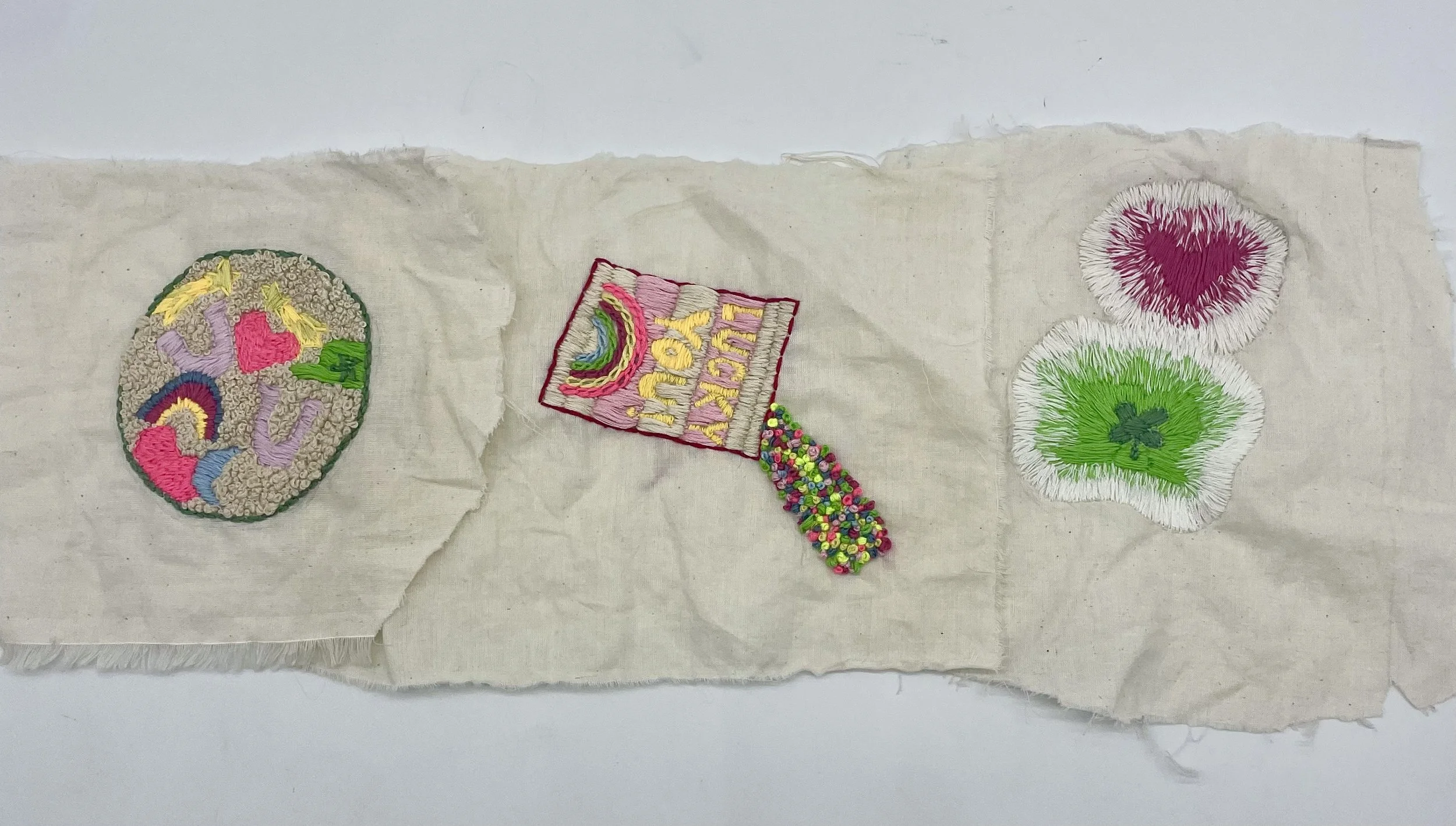 Chain Stitches, French Knots, Satin Stitches, Back Stitches, and Brick Stitches