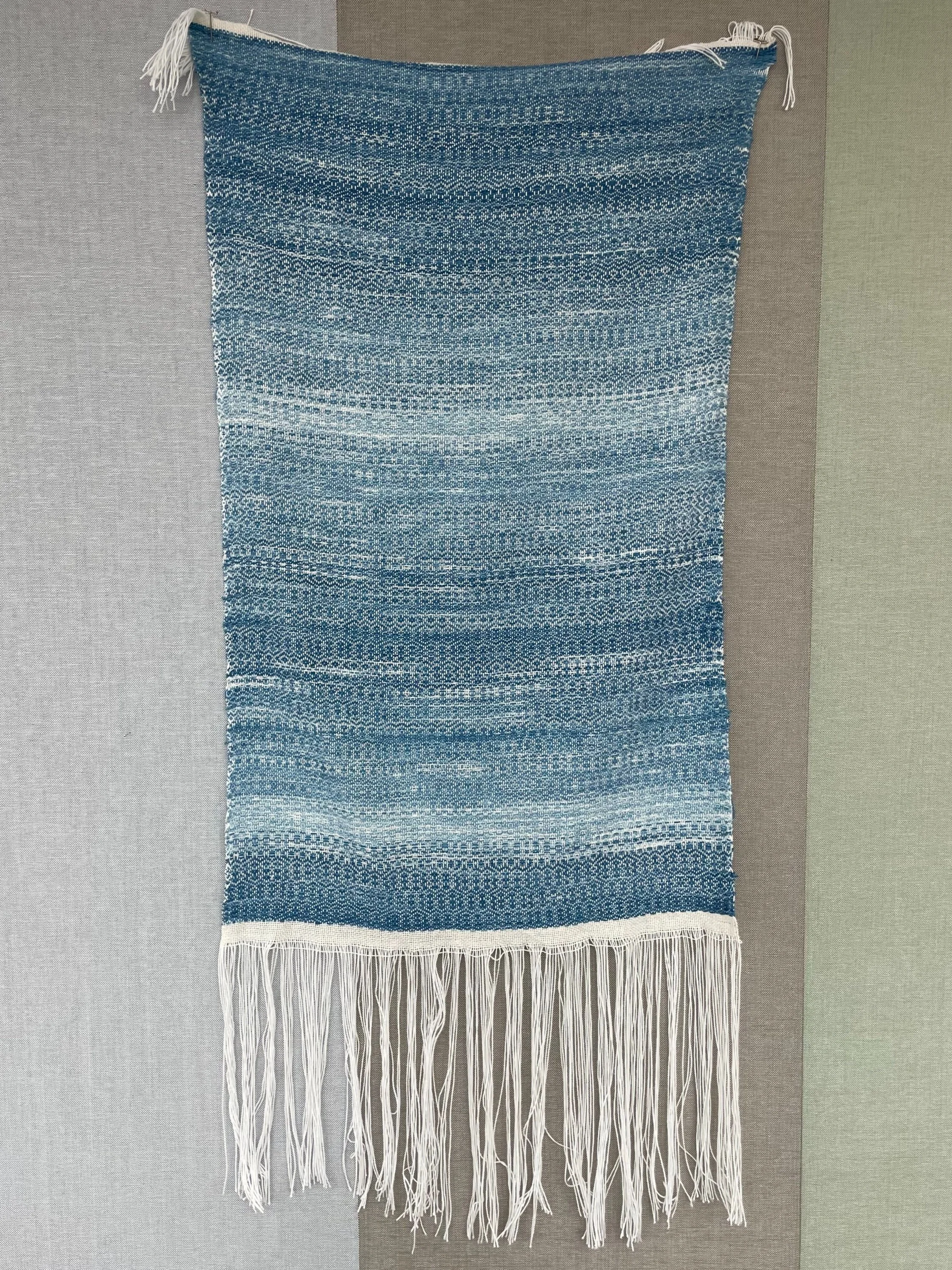 All students in the studio warped 7 yards of yarn. For weaving 3, we did a material study of wool, hemp, linen, and silk. Weaving 1 did a color study. Each piece was done in collaboration with a classmate by using their warped loom.